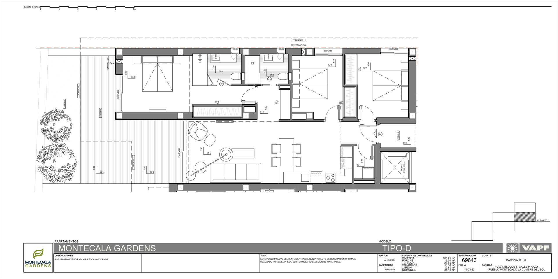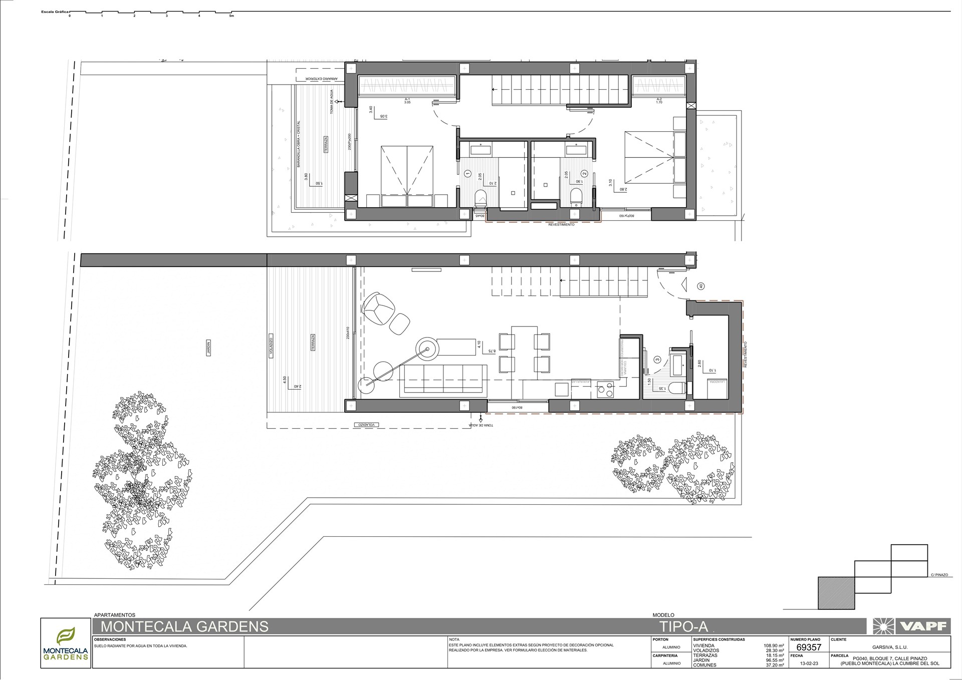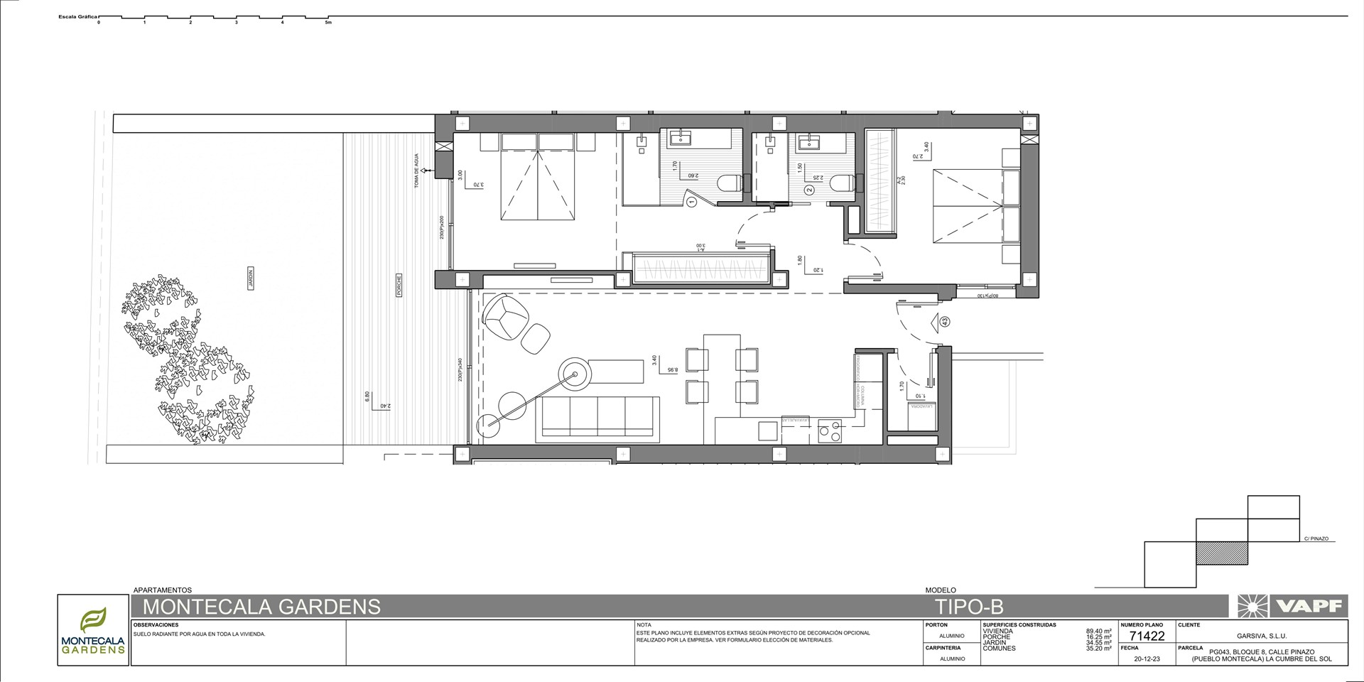 Wij bieden u aan luxe nieuwbouwappartementen uitgevoerd in verschillende types met een moderne architectuur met 2 of 3 slaapkamers en 2 of 3 badkamers, open keuken en salon-eetkamer, terras en tuin op de begane grond of terras en solarium op de verdieping. De appartementen zijn ontworpen om maximum te genieten van de ruimte en het mediterrane licht. Elk blok bestaat uit 5 woningen. De onderste woning betreft de duplex woning, boven deze duplex woning 2 appartementen en daarboven 2 x een penthouse.