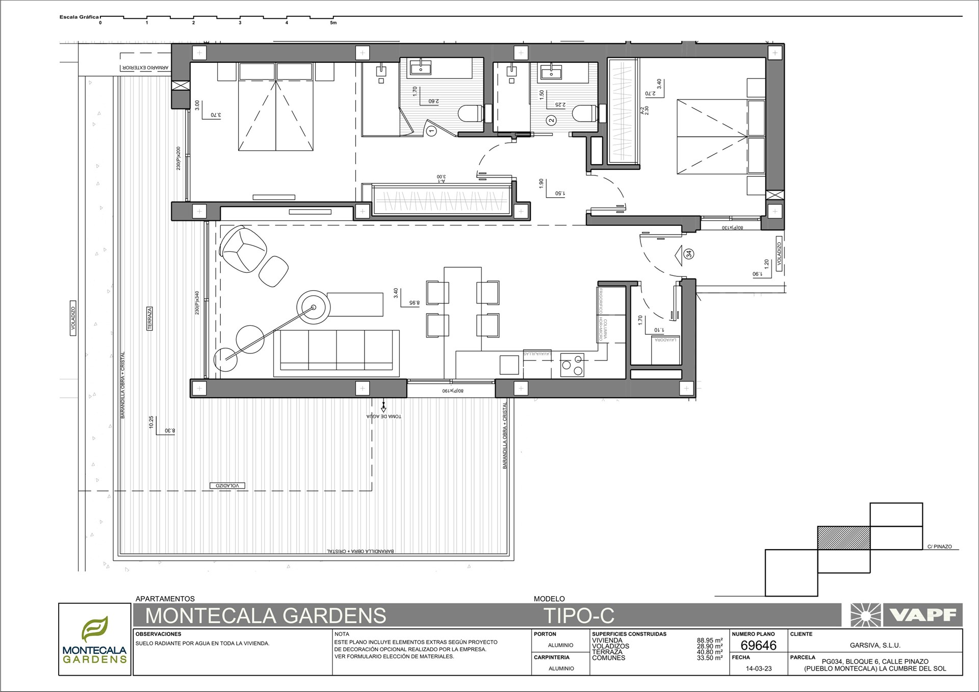 Ook de uitrusting van de appartementen is gericht op comfort met vloerverwarming, airconditioning om te koelen of te verwarmen, warm water via aerothermisch systeem, uitgerust met huishoudtoestellen en een decoratieproject dat het geheel een unieke, moderne stijl geeft.