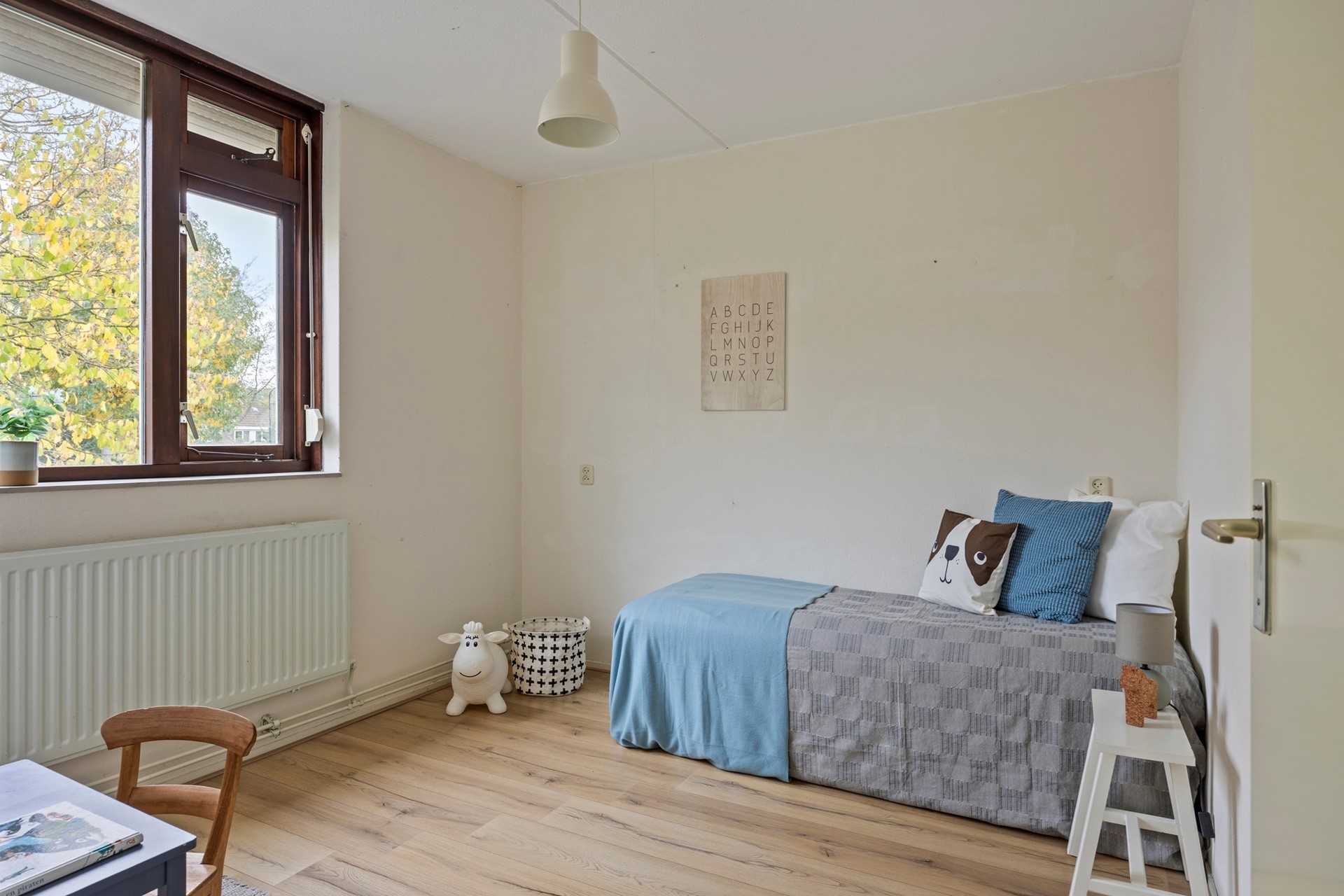 Aan de achterzijde de ruime ouderslaapkamer met groot raam en rolluik.